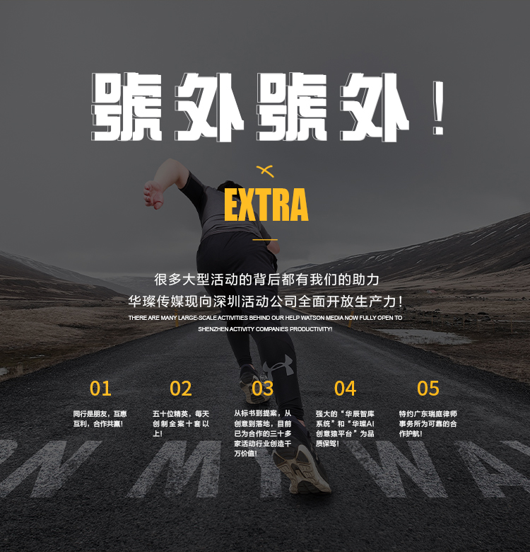活動是一門綜合藝術,是傳播策略、公關媒介、平面設計、空間規劃、工藝工法、臺形表、聲光電的集大成。整合活動關鍵要素,把控現場每一個環節,把關活動每一次出品,使活動效果最優化,是我們每場執行的標準。